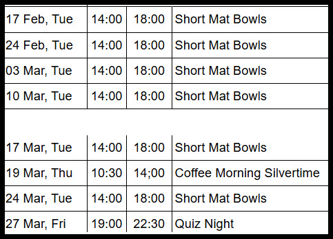 The next coffee morning – last of the winter season -will be on Thursday 19th March when Silverline will give a presentation on Tax and Wills